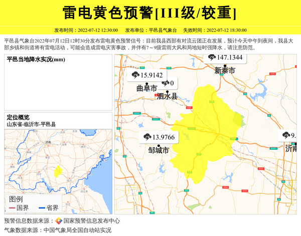 平邑县气象台发布雷电黄色预警[III级/较重] 相关文章
