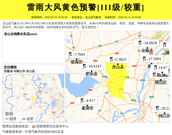 含山县气象局发布雷雨大风黄色预警[III级/较重] 相关文章