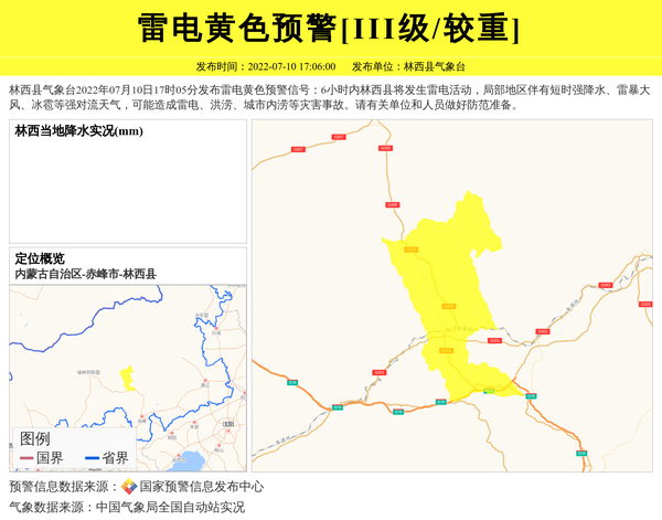林西县气象台发布雷电黄色预警[III级/较重] 相关文章