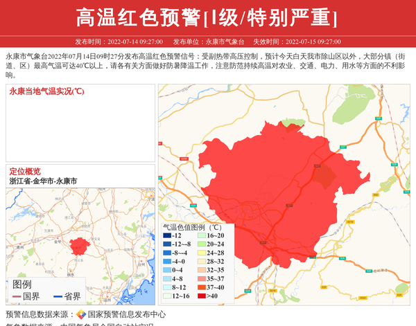 永康市气象台发布高温红色预警[Ⅰ级/特别严重] 相关文章