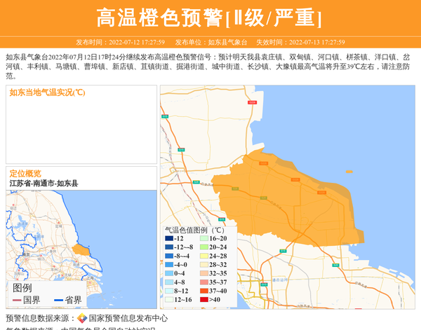 如东县气象台发布高温橙色预警[Ⅱ级/严重] 相关文章