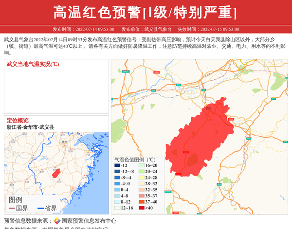 武义县气象台发布高温红色预警[Ⅰ级/特别严重] 相关文章