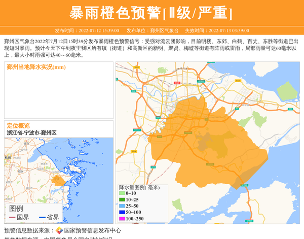 鄞州区气象台发布暴雨橙色预警[Ⅱ级/严重] 相关文章