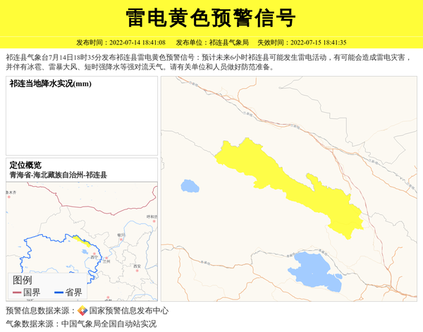 祁连县气象台发布雷电黄色预警信号 相关文章