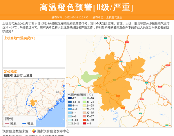 上杭县气象台发布高温橙色预警[Ⅱ级/严重] 相关文章