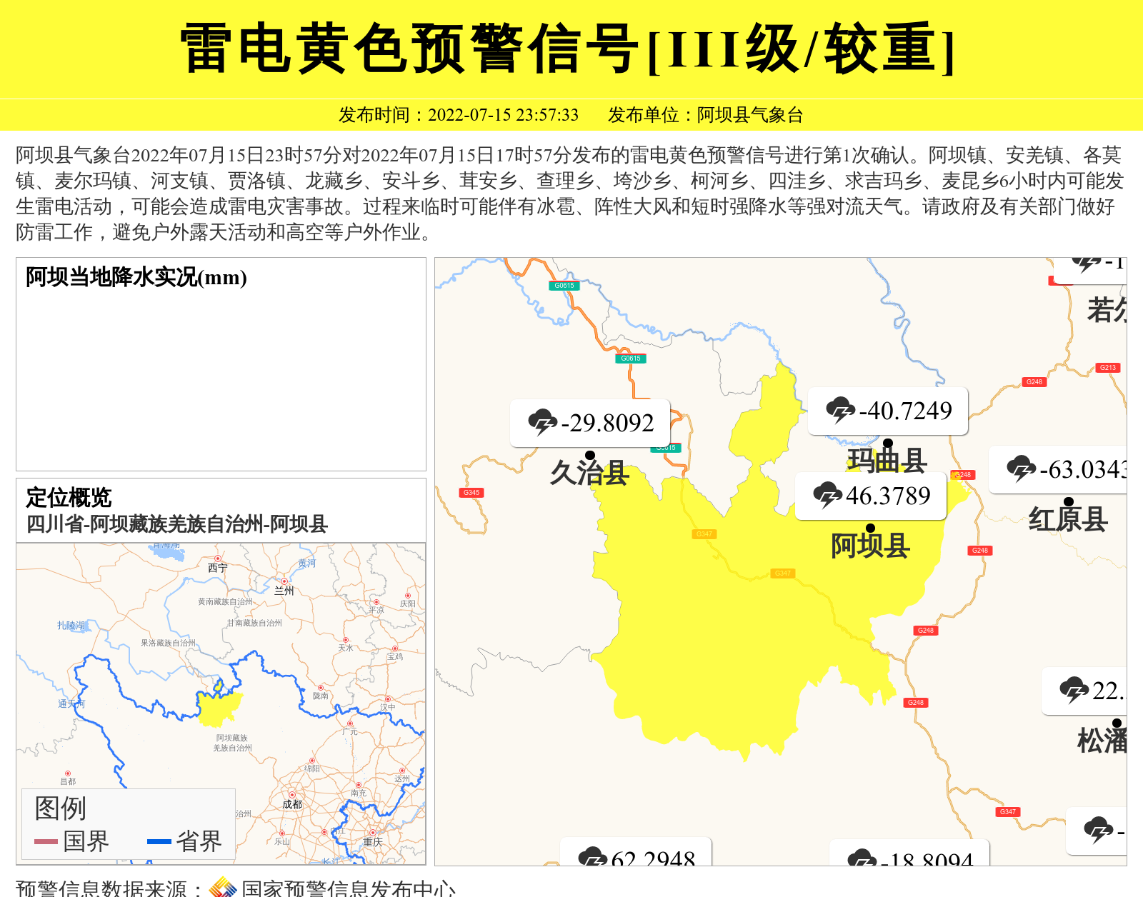 阿坝县气象台更新雷电黄色预警信号[III级/较重] 相关文章