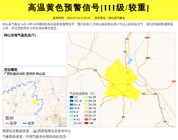 钟山县气象台更新高温黄色预警信号[III级/较重] 相关文章
