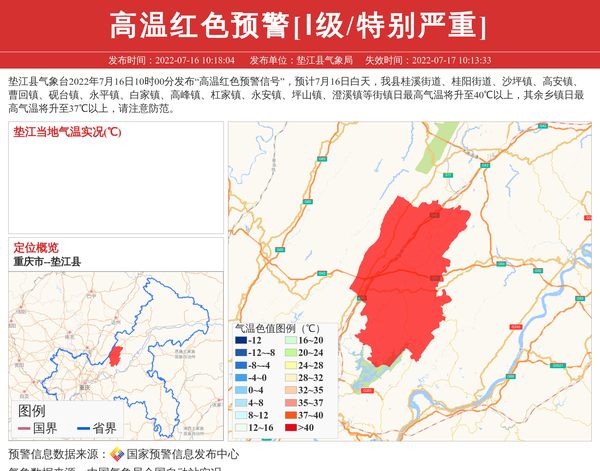 垫江县气象局发布高温红色预警[Ⅰ级/特别严重] 相关文章
