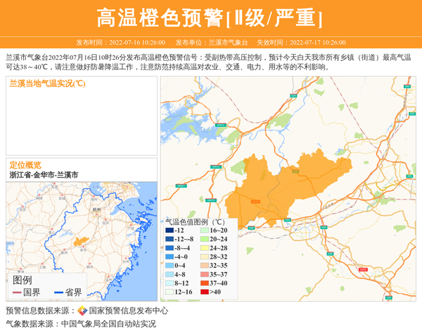 兰溪市气象台发布高温橙色预警[Ⅱ级/严重] 相关文章