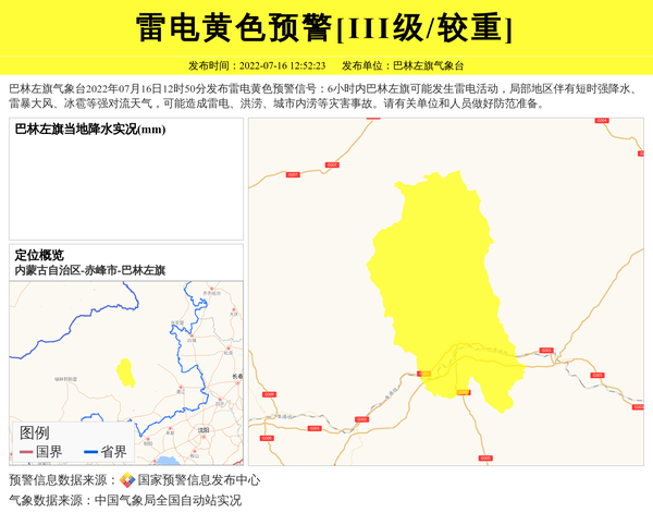巴林左旗气象台发布雷电黄色预警[III级/较重] 相关文章