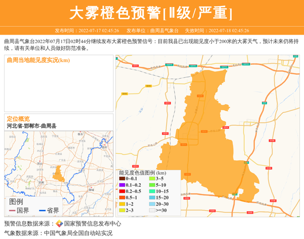 曲周县气象台更新大雾橙色预警[Ⅱ级/严重]