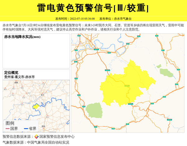 赤水市气象台继续发布雷电黄色预警信号[Ⅲ/较重]