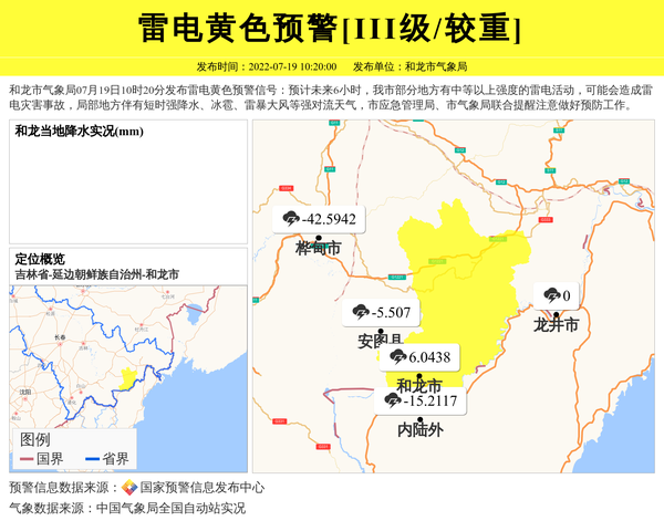 和龙市气象局发布雷电黄色预警[III级/较重] 相关文章