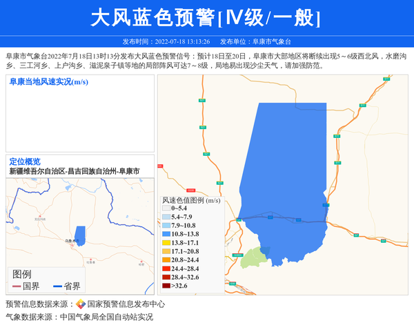 阜康市气象台发布大风蓝色预警[Ⅳ级/一般] 相关文章