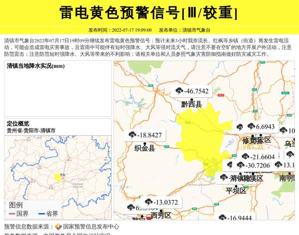 清镇市气象台继续发布雷电黄色预警信号[Ⅲ/较重] 相关文章