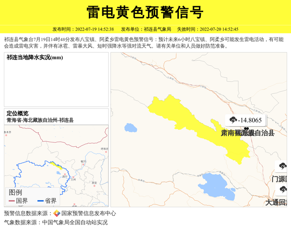 祁连县气象台发布雷电黄色预警信号 相关文章