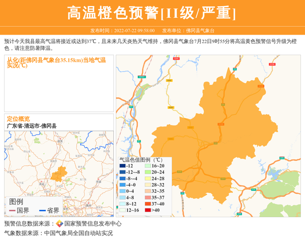 佛冈县气象台发布高温橙色预警[II级/严重] 相关文章