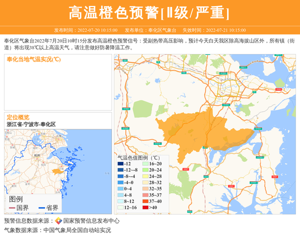 奉化区气象台发布高温橙色预警[Ⅱ级/严重] 相关文章