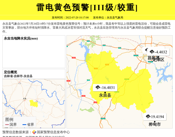永吉县气象局发布雷电黄色预警[III级/较重] 相关文章