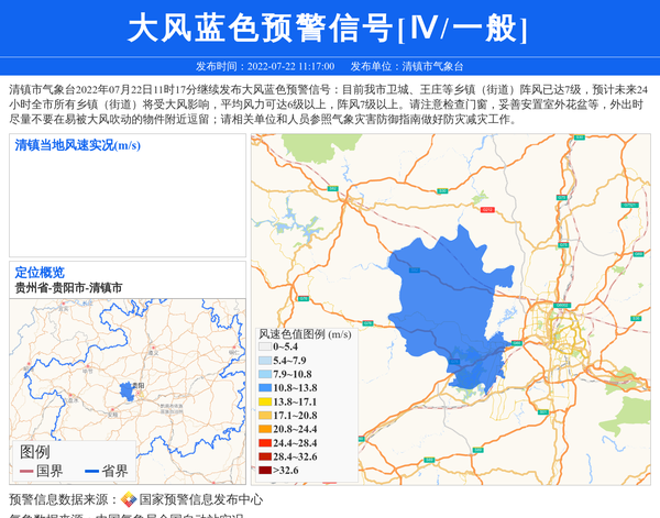 清镇市气象台继续发布大风蓝色预警信号[Ⅳ/一般] 相关文章