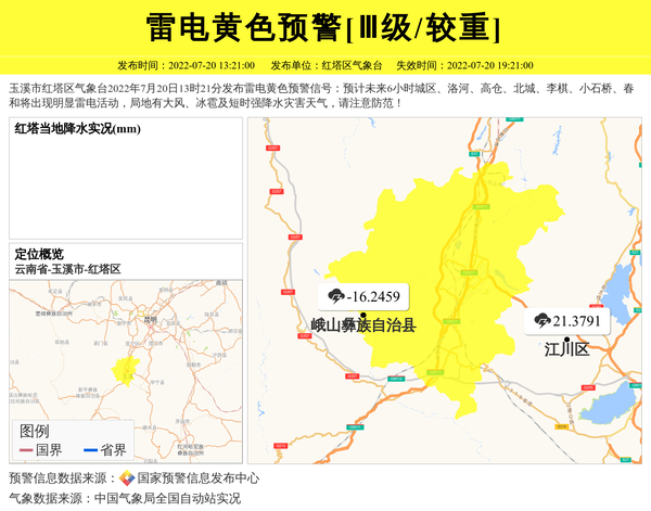 红塔区气象台发布雷电黄色预警[Ⅲ级/较重] 相关文章