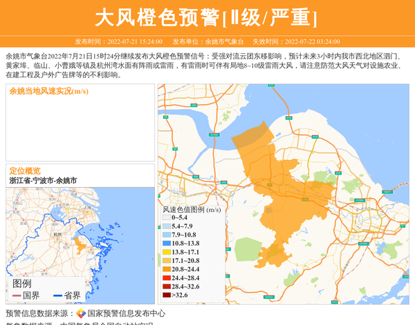余姚市气象台更新大风橙色预警[Ⅱ级/严重] 相关文章