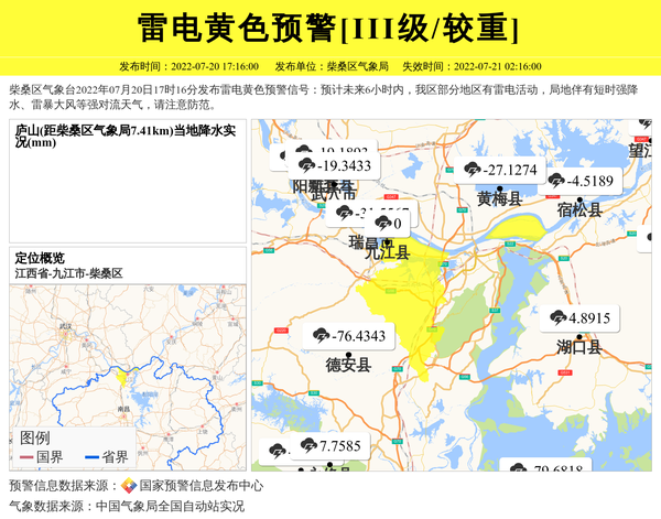 柴桑区气象台发布雷电黄色预警[III级/较重] 相关文章