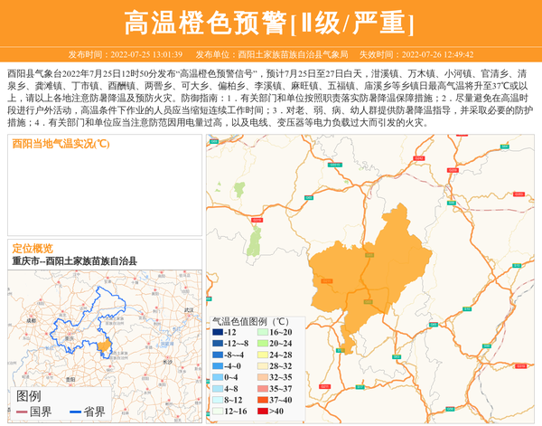 酉阳土家族苗族自治县气象局发布高温橙色预警[Ⅱ级/严重] 相关文章