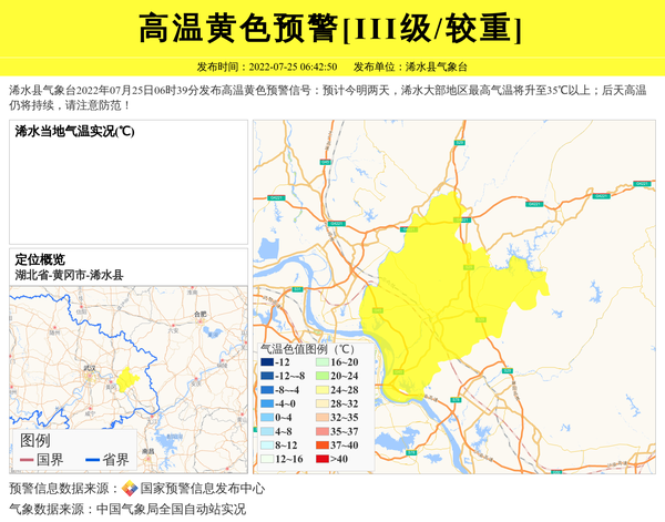 浠水县气象台发布高温黄色预警[III级/较重] 相关文章