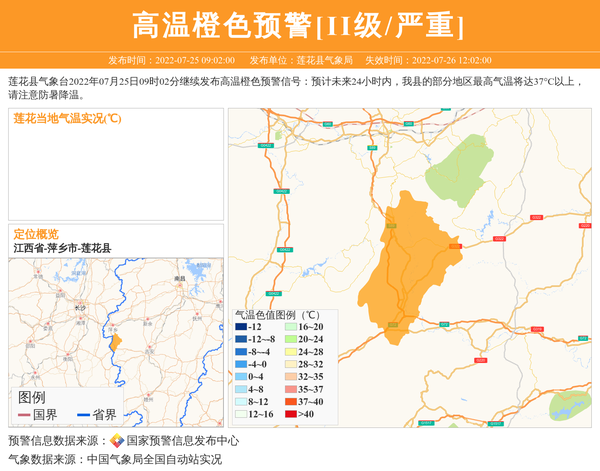 莲花县气象台更新高温橙色预警[II级/严重]