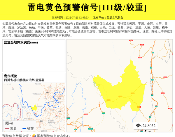 盐源县气象台发布雷电黄色预警信号[III级/较重] 相关文章