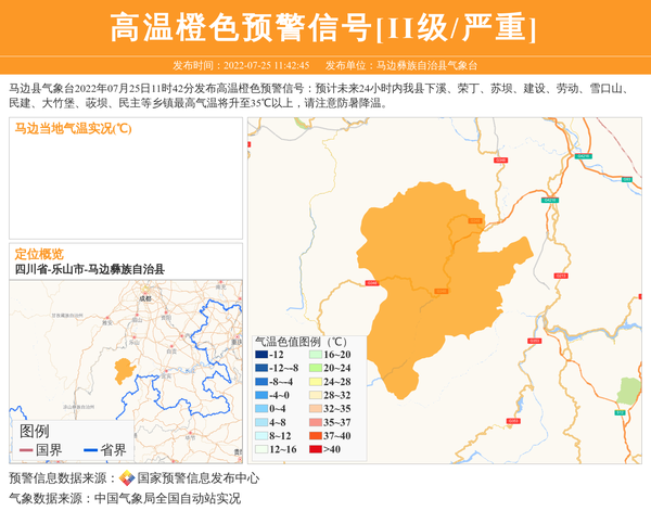 马边彝族自治县气象台发布高温橙色预警信号[II级/严重]