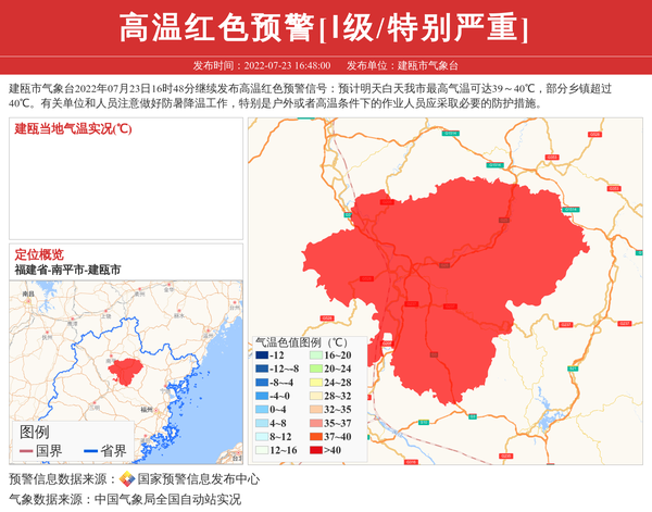 建瓯市气象台发布高温红色预警[Ⅰ级/特别严重] 相关文章