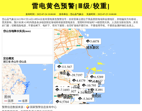 岱山县气象台发布雷电黄色预警[Ⅲ级/较重] 相关文章
