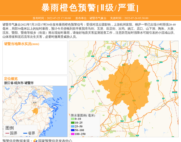 诸暨市气象台发布暴雨橙色预警[Ⅱ级/严重] 相关文章