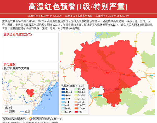 文成县气象台发布高温红色预警[Ⅰ级/特别严重] 相关文章