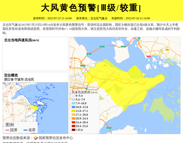 北仑区气象台发布大风黄色预警[Ⅲ级/较重] 相关文章