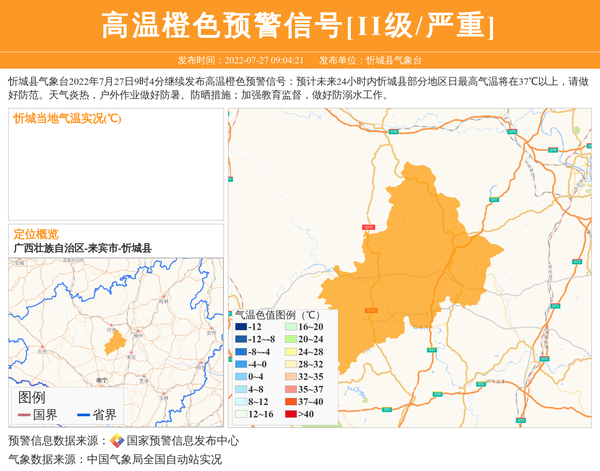 忻城县气象台更新高温橙色预警信号[II级/严重] 相关文章