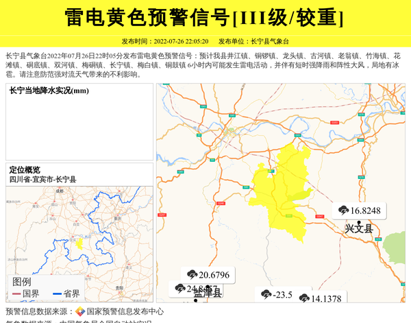 长宁县气象台发布雷电黄色预警信号[III级/较重] 相关文章