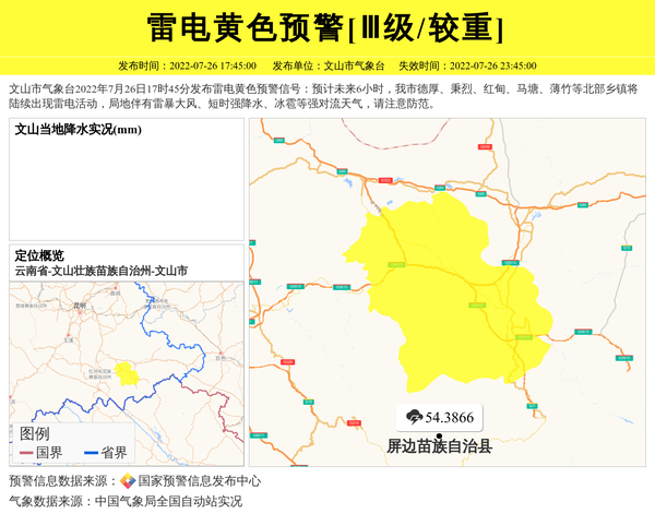 文山市气象台发布雷电黄色预警[Ⅲ级/较重]
