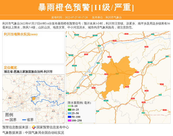 利川市气象台发布暴雨橙色预警[II级/严重] 相关文章