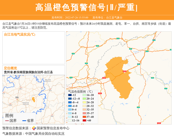 台江县气象台继续发布高温橙色预警信号[Ⅱ/严重] 相关文章
