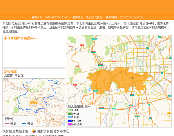 丰台区气象台升级发布暴雨橙色预警[II级/严重] 相关文章