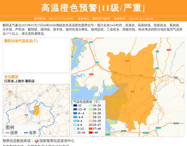鄱阳县气象台更新高温橙色预警[II级/严重] 相关文章