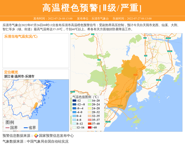乐清市气象台发布高温橙色预警[Ⅱ级/严重] 相关文章