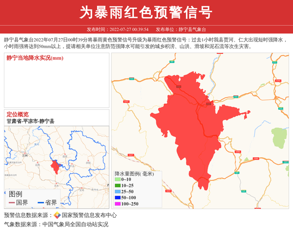 静宁县气象台暴雨黄色预警信号升级为暴雨红色预警信号 相关文章