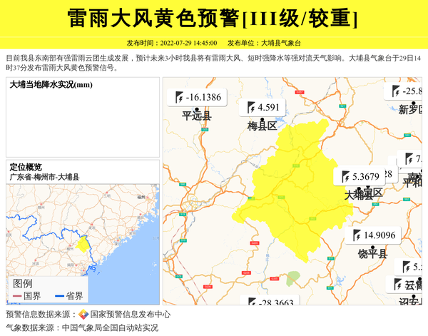 大埔县气象台发布雷雨大风黄色预警[III级/较重] 相关文章
