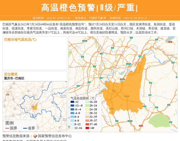 巴南区气象局发布高温橙色预警[Ⅱ级/严重]