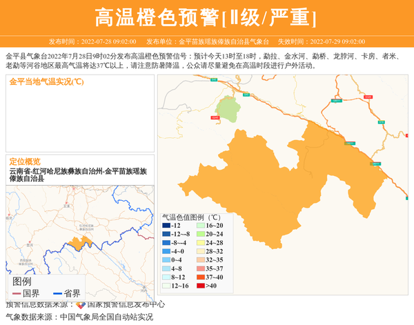 金平苗族瑶族傣族自治县气象台发布高温橙色预警[Ⅱ级/严重]