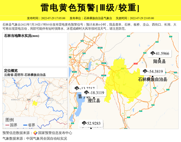 石林彝族自治县气象台发布雷电黄色预警[Ⅲ级/较重] 相关文章